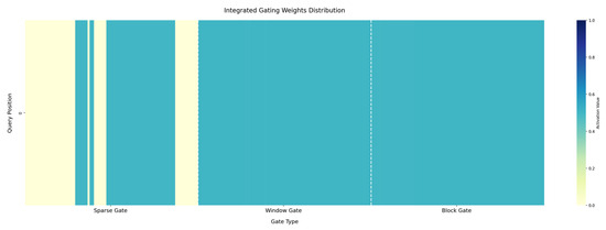 The integrated gating weight distribution visualization data presented in Figure 3 are derived from the first dataset of the MRPC validation set. In this visualization, the horizontal axis represents the gating types, including sparse gating, sliding window gating, and block compression gating, and the vertical axis represents the query location. From the figure, it can be observed that there are differences in the activation values of different gating types at different query positions, which reflects the model’s dynamic selection and fusion strategy for different attentional mechanisms when processing sequence data. With the help of this visualization, it is possible to intuitively understand how much the model relies on sparse attention, sliding window attention, and block compression attention at different positions, which helps with analyzing further and optimizing the model’s performance.