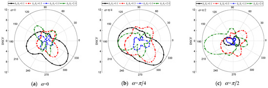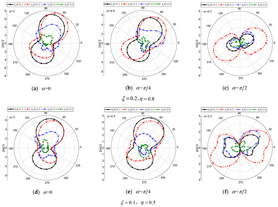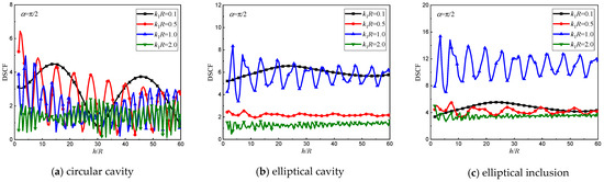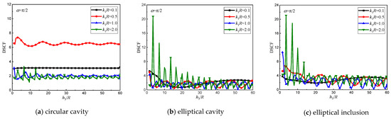 DSCF of the elliptical inclusion with different . (, , , , , , , , , , , , , , , , , 0.5).