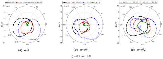 DSCF of the elliptical inclusion with different . (, , , , , , , , , , , , , , , 0.5).