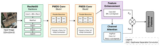 Despite PMDS Conv’s effective capture of multi-scale features in remote sensing images, our experimental analysis revealed room for improvement in distinguishing complex scenes. To address this limitation, we developed two complementary innovative modules that further enhance model performance.
