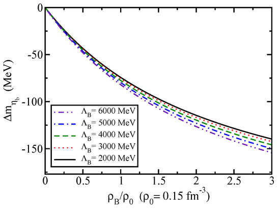 - Zeminiani, G.N.; Cobos-Martinez, J.J.; Tsushima, K. Υ and ηb mass shifts in nuclear matter. Eur. Phys. J. A 2021, 57, 259. [Google Scholar] [CrossRef]