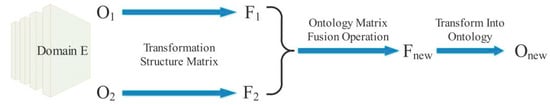 | is a new conceptual set, where c30 is the subconcept of all concepts in C1 and C2 on domain E; from the new concept set; Step 3: Obtain the structure matrices F1 and F2 of the two ontology to be fused by matrix operation; Step 4: From the operation can be derived ; , all concepts of c3i, i = 0, 1, 2, …, m + n. Step 6: Based on this, a new ontology after fusion can be constructed. |