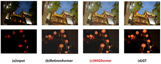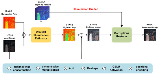 - Cai, Y.; Bian, H.; Lin, J.; Wang, H.; Timofte, R.; Zhang, Y. Retinexformer: One-stage retinex-based transformer for low-light image enhancement. In Proceedings of the IEEE/CVF International Conference on Computer Vision, Paris, France, 2–3 October 2023; pp. 12504–12513. [Google Scholar]