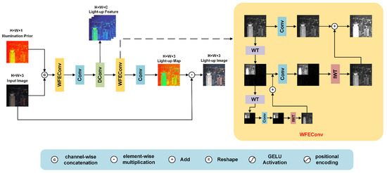 - We propose a wavelet illumination estimator and design the WFEConv module to effectively capture the multi-scale features in the image by using the multi-scale characteristics of the Wavelet Transform (WT) to enhance the accuracy and detail of illumination estimation.