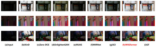 - Liu, X.; Wu, Z.; Li, A.; Vasluianu, F.A.; Zhang, Y.; Gu, S.; Zhang, L.; Zhu, C.; Timofte, R.; Jin, Z.; et al. NTIRE 2024 challenge on low light image enhancement: Methods and results. In Proceedings of the IEEE/CVF Conference on Computer Vision and Pattern Recognition, Seattle, WA, USA, 16–22 June 2024; pp. 6571–6594. [Google Scholar]