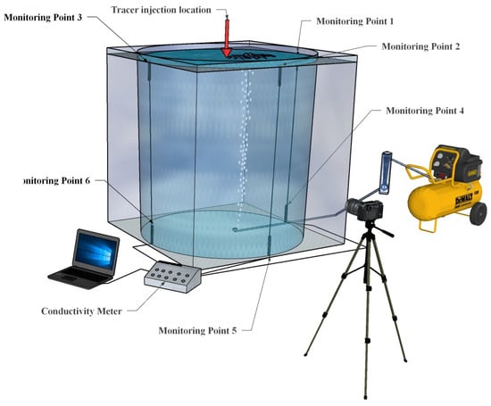 - Jojo-Cunningham, Y.; Guo, X.P.; Zhou, C.; Liu, Y. Volumetric Flow Field inside a Gas Stirred Cylindrical Water Tank. Fluids 2024, 9, 11. [Google Scholar] [CrossRef]