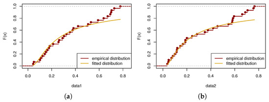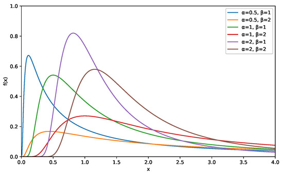 This paper focuses on inference of the two-sample IWD under the JPC model. Following the idea of [24], for product A, let denote the lifetimes of m units. These are assumed to be independent and identically distributed (i.i.d.) according to the IWD with a shape parameter and scale parameter . Similarly, for product B, let be the lifetimes of n units, which are also i.i.d. following the IWD with a shape parameter and the same scale parameter .