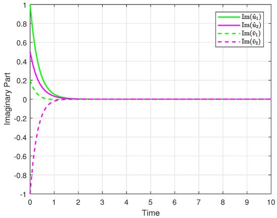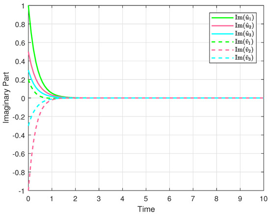 The imaginary part of the state trajectories in time-domain behaviors for Example 2.