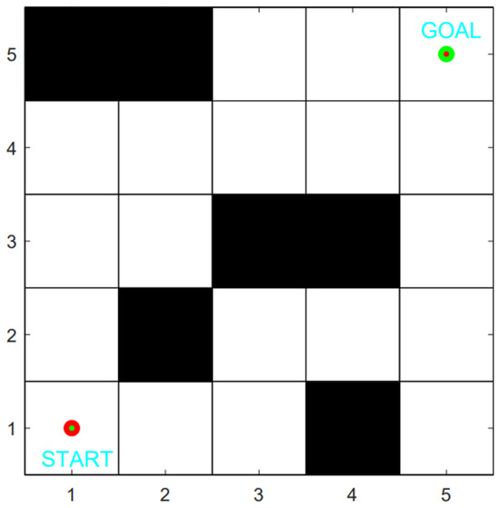 Figure 2, in a 5 × 5 raster map, the bottom left raster is the start position and the top right raster is the target position.