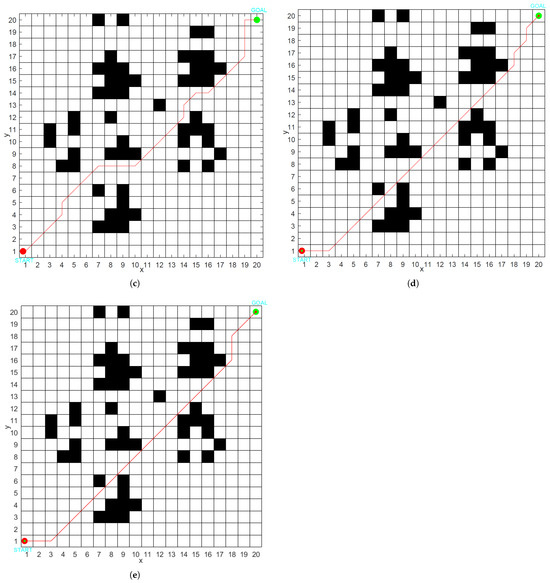 19], etc.; however, these algorithms suffer from many drawbacks in path planning, such as a lack of flexibility; convergence being too fast, leading to local optima; generating paths that are not smooth enough; global optimality-seeking ability being poor, etc. In addition, most of the algorithms’ optimization objectives consider insufficient factors to satisfy the actual work of robots.