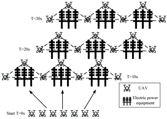 The increasing scale and operational intricacy inherent in contemporary power grids have revealed significant constraints in traditional manual inspection approaches, specifically regarding efficiency, precision, and adherence to safety protocols [1,2,3]. Unmanned aerial vehicles (UAVs), distinguished by their exceptional maneuverability and capability to access restricted areas, have evolved into revolutionary apparatuses for electrical infrastructure assessment [4,5]. Moreover, MUAV collaborative operational frameworks exhibit enhanced inspection performance and system robustness relative to individual UAV implementations, establishing this paradigm as a pivotal investigative domain within the field of power grid monitoring technologies [6,7,8].