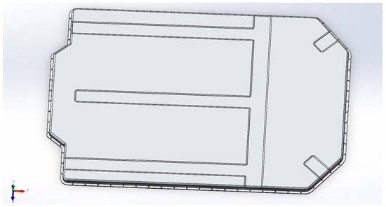 SolidWorks is a powerful CAD modeling software that focuses on 3D and 2D design. It can flexibly construct complex geometric models to meet accuracy requirements, efficiently create 3D models that meet engineering needs, and quickly optimize them. SolidWorks seamlessly integrates with a variety of simulation and analysis software to support stress analysis and other simulations, providing convenient support for engineering validation. It is widely used in the aerospace and automotive industries, machinery manufacturing, and other industries. After confirming the size and structure of the top cover design, the battery pack top cover is modeled by SolidWorks, as shown in Figure 1.