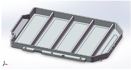 In recent years, the high-quality development of China’s national economy has contributed to the rapid growth of the automotive industry, and China has steadily ranked as the world’s largest automotive production and consumption market for many years [1]. However, the rapid spread of traditional fuel vehicles, while bringing convenience, has also placed enormous pressure on energy and the environment [2,3]. The depletion of fuel resources has exacerbated the energy crisis, while tailpipe emissions pose a serious challenge to air quality and public health. To cope with these problems, the new energy vehicle industry has ushered in an opportunity for rapid development, in which new energy models represented by electric vehicles have gradually become the core of the market [4,5,6]. As a core component of new energy electric vehicles, the design and performance optimization of the battery pack plays an important role in improving the energy efficiency, safety, and service life of vehicles. In particular, it is important to assess whether the structure of the battery shell meets the impact strength and vibration performance as well as the impact on the lightweight of the whole vehicle [7]. Therefore, scientific modeling, accurate analysis, and optimization of the battery shell are some of the key topics for promoting the technological progress of new energy vehicles.