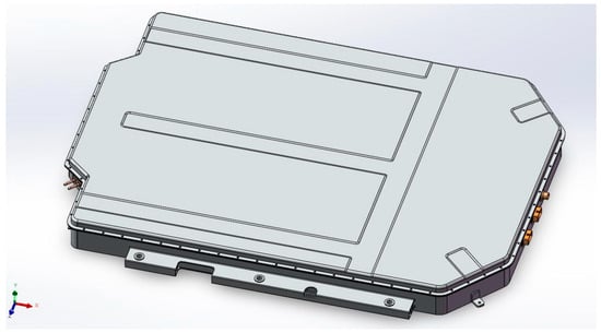 In order to perform the finite element analysis, a 3D model of the battery pack was first created in SolidWorks in this study. The model was exported as a generic .x_t format file in order to facilitate the import of the model into the FEA platform. The .x_t format file was then imported into ANSYS Workbench for finite element model construction. After being imported into ANSYS Workbench, the model was simplified appropriately in order to improve the computational efficiency while ensuring the analysis accuracy. Considering that the connection between the components of the battery pack is welding, all the components are simplified to be treated as a whole in the finite element analysis. In this way, complex contact relationships can be avoided in the model, reducing the amount of calculation and improving the efficiency of finite element analysis.