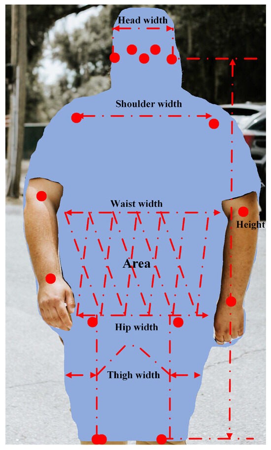 Recently, numerous health science studies have shown that certain 2D anthropometric indicators are closely related to BMI [13,14]. However, most 2D anthropometric measurement features, such as waist-to-thigh width ratio and hip-to-head width ratio, only represent the lateral proportions of the body and lack longitudinal information.