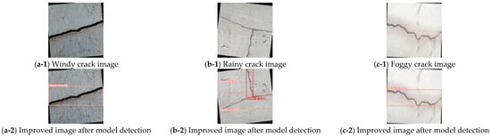 The experimental results demonstrate that environmental factors do not lead to a decrease in detection accuracy. By introducing the AMFA module for enhanced multi-scale feature aggregation and optimizing localization accuracy with the DGFW-IoU loss function, the model’s adaptability in complex environments is significantly improved. Specifically, the AMFA mechanism effectively captures multi-scale crack features, reducing missed and false detections caused by environmental interference, while the DGFW-IoU loss function dynamically adjusts the loss weight for small targets, improving the detection accuracy of small cracks in complex backgrounds.