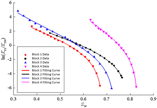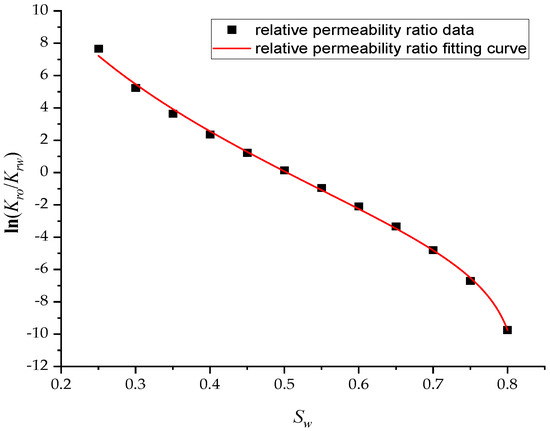 19]. A different water-flooding degree means a huge difference in oil-water diversion capacity. The semi-logarithmic relationship curve between the oil-water relative permeability ratio and water saturation no longer shows a completely linear relationship, but shows a downward bend [