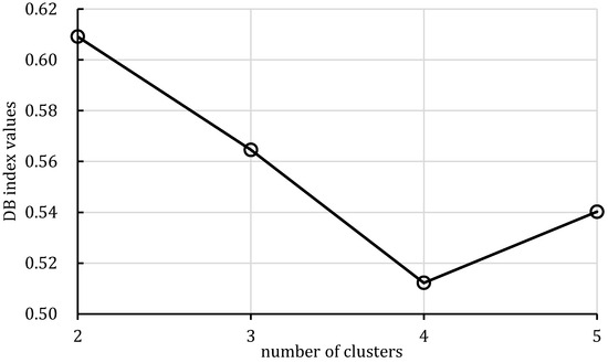 28]. This paper selects the Davies–Bouldin (DB) index [