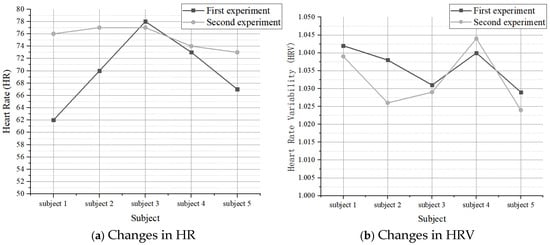 The experimental equipment was checked before the experiment to ensure proper communication between the EEG and ECG data testing equipment and the computer. The subjects were given some time to adjust to the cabin’s environment so that their heart rates and EEGs were maintained in normal conditions. Subjects were asked to ensure they had adequate sleep and rest before the trial, maintain a regular schedule, and refrain from taking any stimulants. To reduce experimental errors related to the participants’ adaptation to the experimental equipment, data from the first two minutes of the experiment were discarded during data processing.