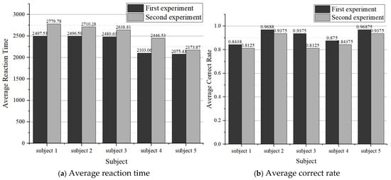Visual search: The average reaction time and task correctness of the subjects under the selected two tasks were compared and analyzed before and after. If the second reaction time was longer than the first, it indicated that the subjects had poor attention and were at a high cognitive load level.