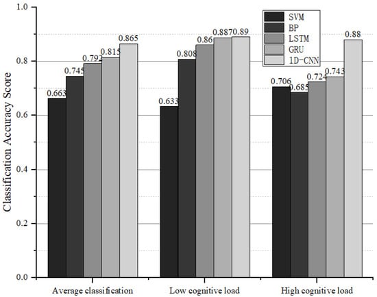 In addition, one of the most typical and widely used network structures in deep learning, a CNN, is also used for cognitive load classification [36,37]. Jiao et al. proposed an improved CNN for classifying cognitive load that reduced the model training parameters while also improving the classification results [38].