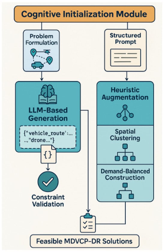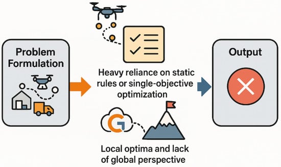 The experimental results show that the method proposed in this paper has a significant advantage in solving the vehicle–multi-drone cooperative delivery problem with transportation constraints. By comparing with Gurobi, it can be observed that our algorithm performs excellently in terms of solution quality, computational efficiency, and scalability to large test cases. As a mathematical optimization solver, Gurobi typically finds the theoretical optimal solution for small-scale problems. However, as the problem size increases, Gurobi’s solution time increases dramatically, and it even fails to complete the optimization within the specified time. For example, in the case with 10 customers (FP11_10), Gurobi’s running time has already reached 1800 s, while our method completes the solution in only 9.50 s, with the best solution quality almost equal to that of Gurobi (8.46 and 8.47, respectively). In larger test cases (such as FP01), Gurobi fails to find a solution, while Loegised is still able to provide a high-quality solution (BST of 13.03). These results indicate that our method not only effectively handles complex problems but also demonstrates exceptional computational efficiency in large-scale scenarios.