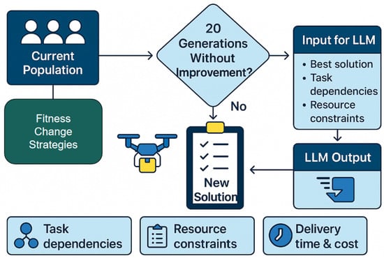 30]. Additionally, since the encoding method in this paper does not include the information about whether the customer is served by a drone or a vehicle, the neighborhood structure in ALNS does not explicitly specify whether the path is a drone path or a vehicle path. For IPGA, based on the study by Zhou et al. [