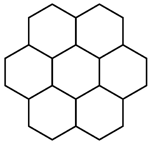 Honeycomb networks are crucial in the realm of chemistry, especially for modeling benzenoid hydrocarbons. Additionally, these networks are widely utilized across various fields, including computer graphics, cellular network base stations, and image processing. The honeycomb structure grid, referred to as , is constructed by augmenting with an additional layer of hexagons along its boundary. In this context, p represents the quantity of hexagons located between the boundary and the center of . Notably, comprises vertices and edges. An example of a honeycomb network with a dimension of 2 is shown in Figure 4.