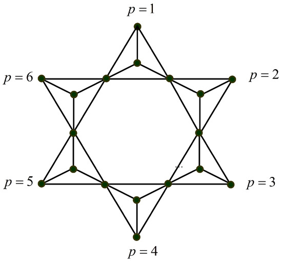 Silicates are created through the combination of sand with metal oxides or metal carbonates. These compounds are characterized by the presence of SiO4 tetrahedra, which are found in nearly all silicates [12]. In the context of chemistry, the oxygen ions are depicted at the corner vertices of the SiO4 tetrahedron, while the central vertex signifies the silicon ions. The corner vertices are referred to as oxygen nodes, whereas the central vertex is known as a silicon node. The formation of minerals occurs via the linkage of oxygen nodes from two distinct silicate tetrahedra in a particular sequence. The configuration of these tetrahedra is crucial in defining the various types of silicate structures. Figure 5 illustrates several structural units found in silicates. The formation of a chain silicate network structure, referred to as , with a dimension of p, is accomplished by aligning p tetrahedra in a sequential arrangement [12]. This specific structure is defined by possessing vertices and edges. The 6-dimensional chain silicate network is depicted in Figure 6. A cyclic network structure, referred to as for , is created by interlinking p tetrahedra. This network, characterized by its dimension p and depicted as a cyclic silicate network, comprises nodes and edges. The cyclic silicate network of dimension 6 is illustrated in Figure 7.