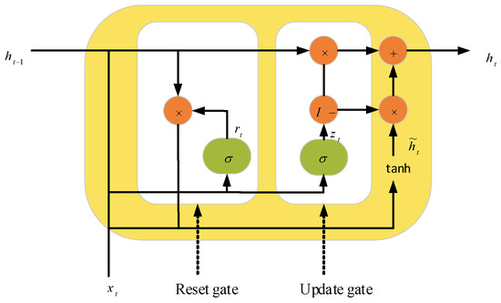 The Bidirectional Gated Recurrent Unit (BiGRU) extends the standard GRU by integrating two independent GRU hidden layers processing the sequence in forward and backward directions, respectively. The forward layer scans the sequence in chronological order, while the backward layer scans it in reverse order, enabling the model to capture both past and future contextual information. This bidirectional structure enhances the ability to learn long-term dependencies and extract deep features. The architecture is illustrated in Figure 7.