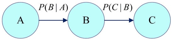 As shown in Figure 3, a single path initiates at state A, continues to B, and finishes at C. Using conditional probabilities, it is computed as follows:
