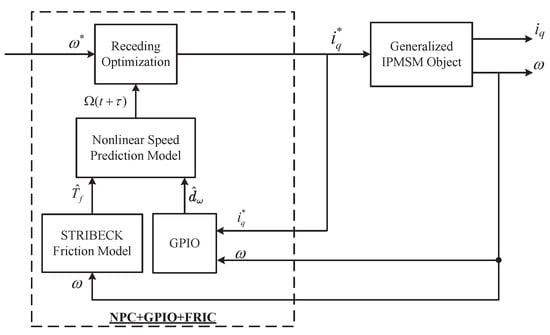 The entire control block diagram of the proposed nonlinear speed predictive control based on friction compensation and the GPI observer is shown in Figure 3, where represents represents the identified friction torque.