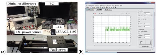 The experiment platform: (a) the tested IPMSM servo system; (b) the software interface of the upper computer.