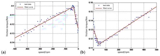 Stribeck friction model identification results: (a) Reverse rotation; (b) forward rotation.