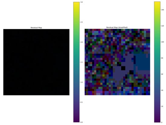In terms of stealth performance, HCBA demonstrated overwhelming superiority compared to other baseline methods. Quantitative evaluation data revealed that the poisoned samples generated by HCBA significantly outperformed existing attack methods in two key metrics for measuring image similarity: peak signal-to-noise ratio (PSNR = 45.09 dB) and structural similarity index (SSIM = 0.998). Compared to the second-best method, HCBA improved PSNR by 9 dB ± 1 and SSIM by 0.03 ± 0.01, indicating that the poisoned samples produced by HCBA were nearly indistinguishable from the original samples in terms of image quality. Visual perception tests further corroborated this conclusion, as human subjective evaluations found it almost impossible to differentiate between poisoned and original samples (see Figure 8 for specific visualizations). Additionally, an in-depth spatial residual analysis (Figure 9) revealed unique properties of HCBA’s perturbations: (1) at the original image scale, these perturbations were completely imperceptible to the naked eye, (2) only when the image was magnified 50 times could globally distributed micro-perturbations be observed, and (3) the perturbation energy was primarily concentrated in the low-frequency regions of the UV color space, which is less sensitive to human vision. This ensured that the perturbations neither significantly degraded visual quality nor compromised the effectiveness of the attack.