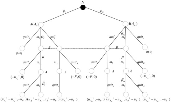 where and are the profits of participants and , respectively, is the type space of , and is the terminal action sequence.