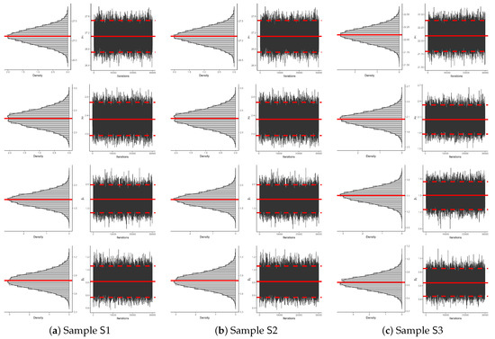 - After repeating steps 3 through 6 multiple times, discard an initial set of iterations as the burn-in period to ensure the Markov chain has converged to its stationary distribution. The remaining iterations yield the following sequences:where represents the number of iterations retained after discarding the burn-in period.