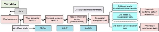 Geographic information systems (GISs) have proven particularly effective in spatial data analysis across diverse disciplines, such as urban planning, environmental monitoring, historical geography, and public health. Characterized by their unique capabilities in spatial positioning, data integration, analysis, and visualization, GIS methods have evolved into critical tools for interdisciplinary research [1,2]. In the era of rapidly expanding digital information, GIS methods provide innovative means to analyze complex spatial data, empowering researchers to decode spatial relationships with enhanced accuracy [1,2,3,4]. In particular, in the field of textual semantic analysis, GIS methods were introduced in the early 2000s, yielding a range of notable achievements [1,5,6]. Numerous studies have utilized GIS methods to perform overlay analyses of textual and geospatial data, facilitating not only the extraction of deep knowledge but also the identification of semantic patterns and knowledge evolution [5,7].
