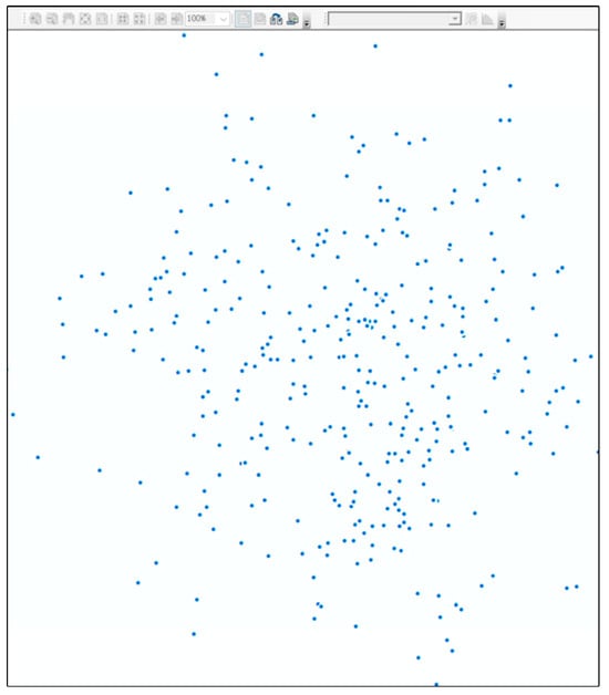 Fifth, guided by the theory of geographic metaphors, a semantic space analogous to geographic space is constructed. Specifically, the data (shown in Table 1) are imported into ArcGIS, where each semantic primitive is represented as a point on the 2D visualization plane (Figure 4). These points are then treated as “seed points” for their respective regions, and geometric divisions are performed using the nearest neighbor principle. Through this partitioning process, a geospatial-analogous model for semantic analysis is established.