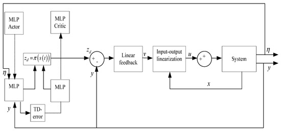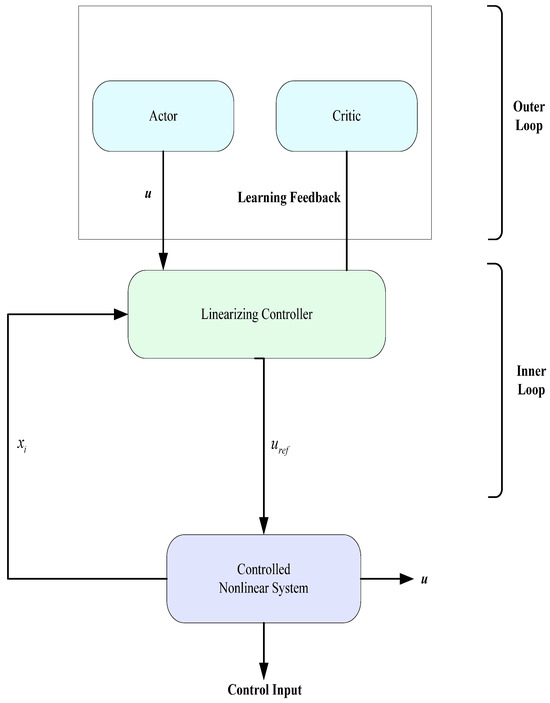 Cascade control architecture combining input–output linearization with Actor–Critic reinforcement learning.