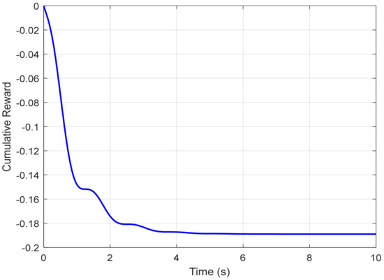 The presented figures provide a detailed insight into the learning dynamics and performance of the proposed control strategy. Figure 10 shows the evolution of the cumulative reward achieved by the Actor–Critic agent throughout the simulation episode. The increasing trend of this curve demonstrates the agent’s ability to progressively improve its control policy, indicating convergence toward increasingly optimal behavior.