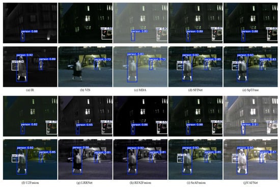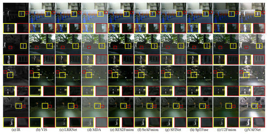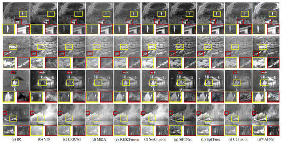 In order to illustrate the advantages of the proposed fusion method, we compared the VAFNet with LRRNet, MDA, RES2Fusion, SeAFusion, SFINet, SpTFuse and U2Fusion on the MSRS dataset.