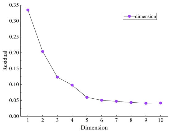 ISOMAP residuals corresponding to different dimensions when k = 3 are plotted as shown in Figure 5, and the residuals are minimized when the data dimension d = 9.