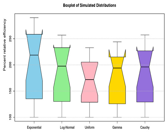 - The simulated percent relative efficiency (SPRE) values for all estimators discussed in this study are calculated across different sample sizes. This phase ensures that the SPRE of each estimator are analyzed for a collection of samples.