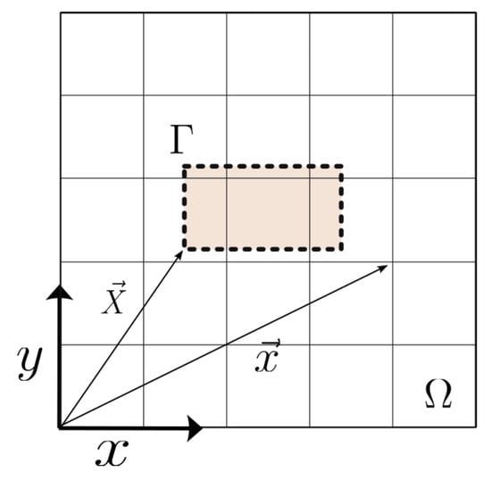 In Equation (2), represents the interface between the Lagrangian and Eulerian domains, and Equation (3) connects these two domains.