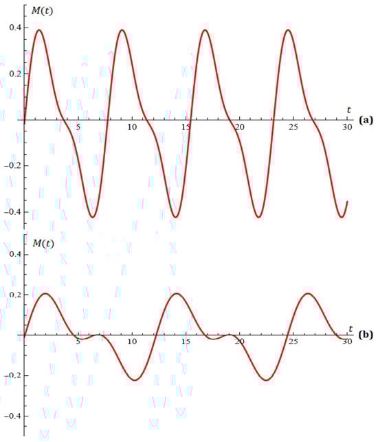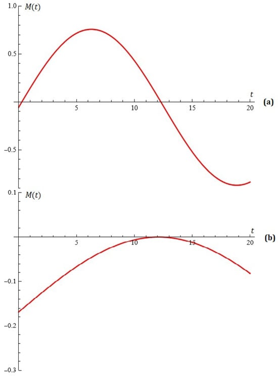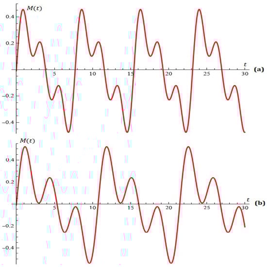 If , , , , and , then, as solutions to the equation in Figure A2, the roots of the Melnikov function are provided.