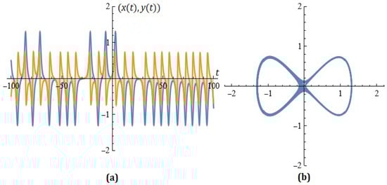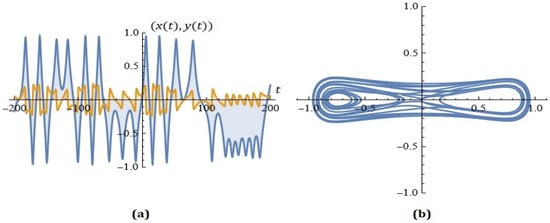 with initial conditions . The authors of [] have thoroughly examined the effects of the damping level on the escape oscillator’s basin bifurcation models and the rational response of the steady-state decisions. A significant amount of diverse literature exists on this subject. To find further pertinent research, we direct the reader to [,,,,,]. Several extended differential models can be found in [,,]. Tang, Man, Zhong, and Chen [] investigate the nature of the factor as a chaos producer in a non-self-governing differential model. In particular, the following model is considered:
