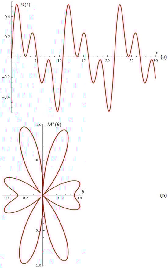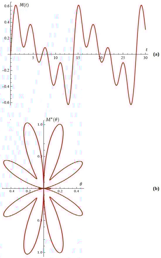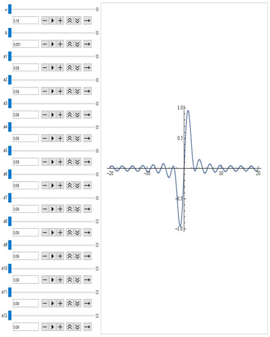 In this section, we present an approach for a possible control on the oscillations. Suppose that the constants from model (7) are the probabilities of some distribution defined on the domain . We may assume this without any restrictions because we can scale the system with the term , and . Let the characteristic function of this distribution be . Also, let be a random variable distributed via the corresponding low and the symbol be for the mathematical expectation. Thus, we have , whereby is denoted the probability measure. Thus, using the following well-known exponential presentation of the cos function