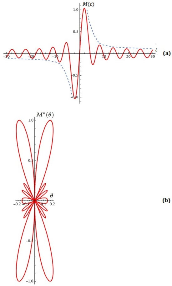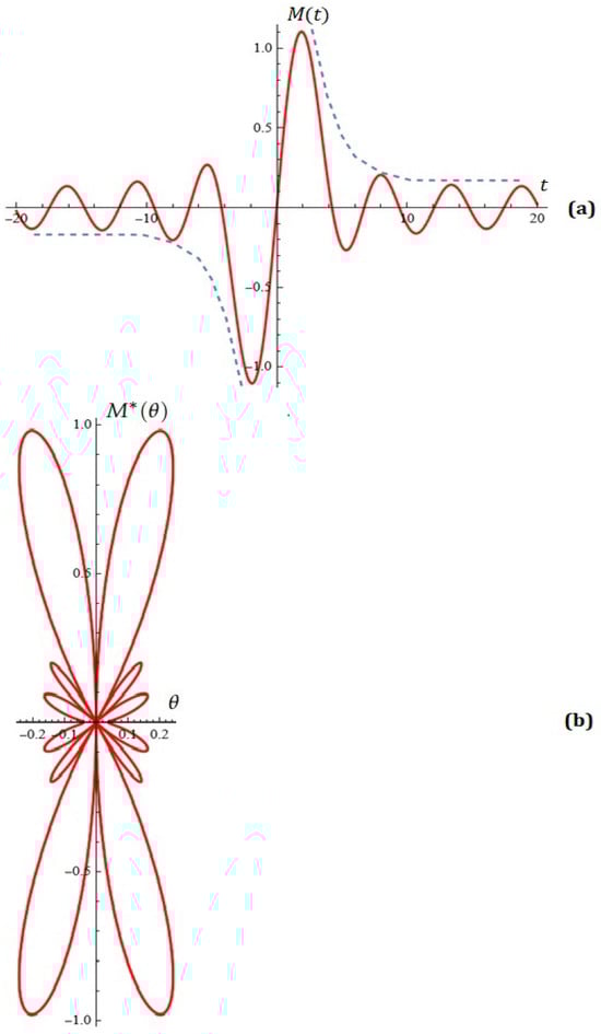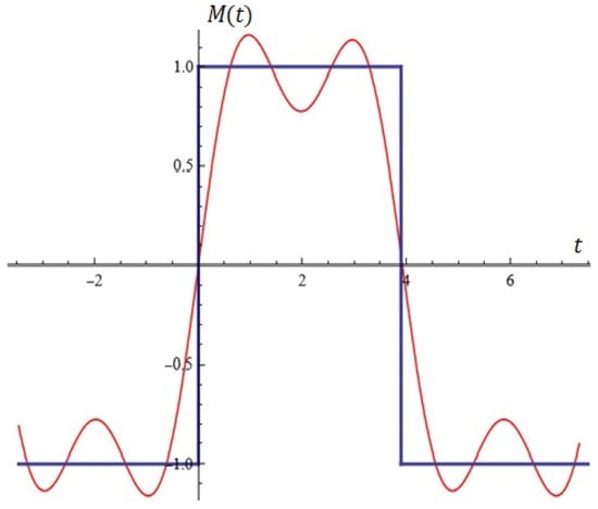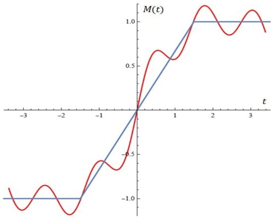 We will consider another typical example related to the possible approximation of the impulse function (see Figure 16—in blue) by .