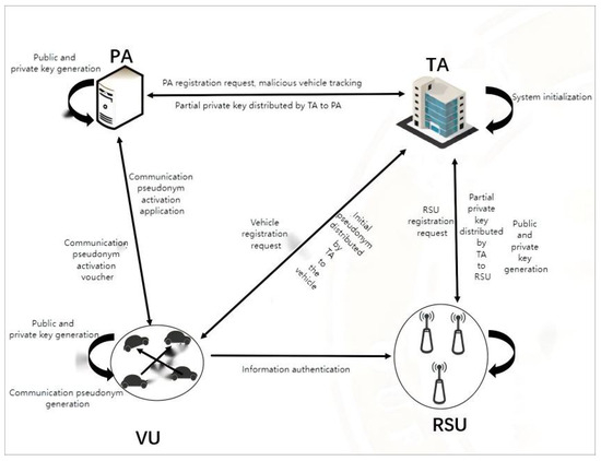 The system model includes four entities: TA, PA, RSU, and VU, as shown in Figure 1. The functionality of each entity is described as follows: